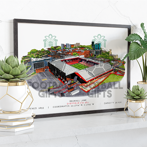 Sheff Utd Around The Grounds Bramall Lane Water Colour Print Framed Print