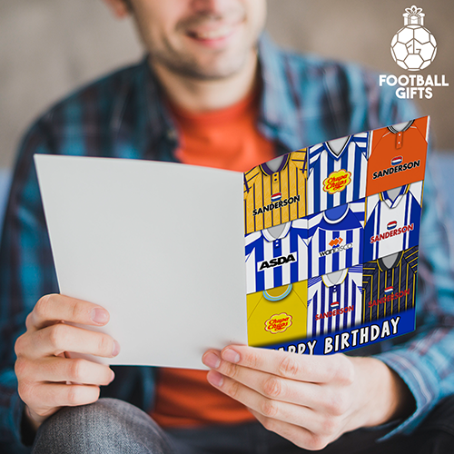 Sheffield Wednesday Happy Birthday Greeting Card Retro Shirt Montage Classic Kits