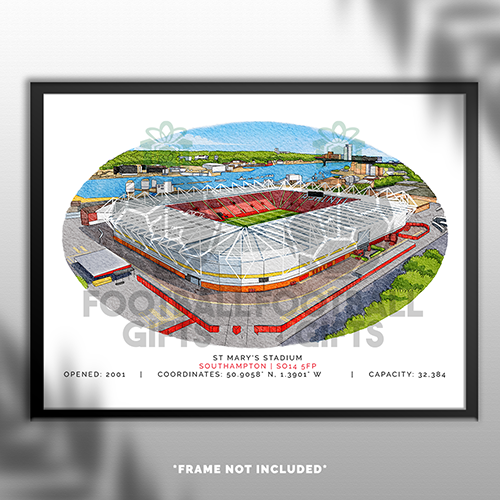 Southampton Around The Grounds St Mary’s Stadium Water Colour Print Framed Print