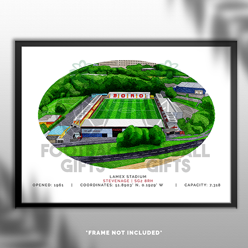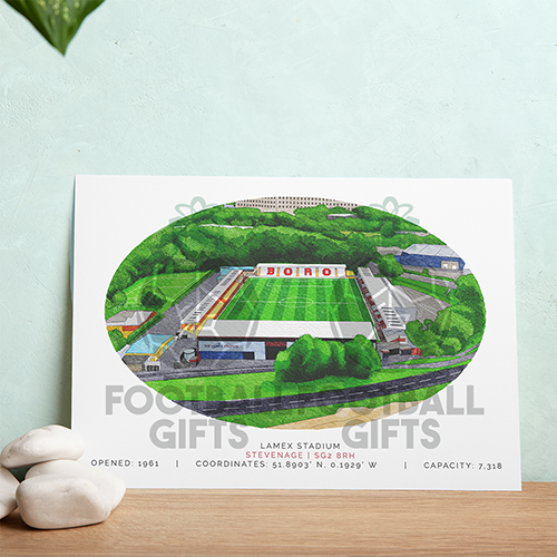 Stevenage Around The Grounds Lamex Stadium Water Colour Print Framed Print