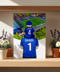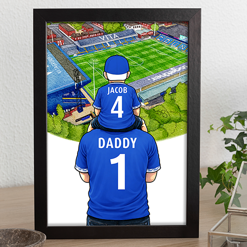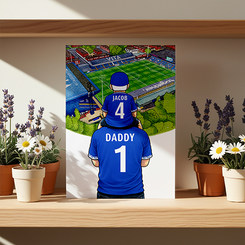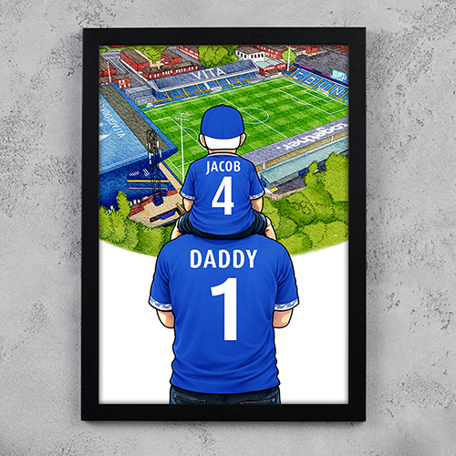 Each piece depicts a detailed print of a water colour painting of the stadium and an image of Father and Son that can be personalised with names and numbers of your choice.
