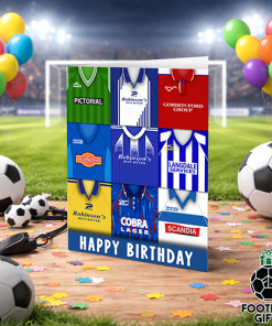 Stockport County Happy Birthday Greeting Card Retro Shirt Montage Classic Kits