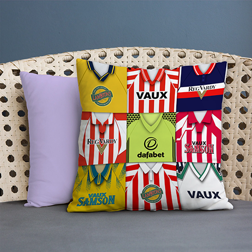 Sunderland Retro Kit Montage Jumbo Football Cushion Classic Kits