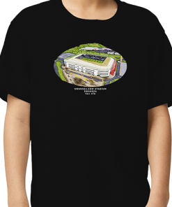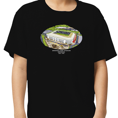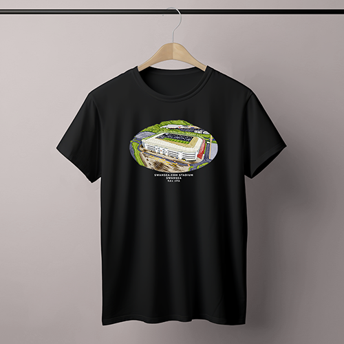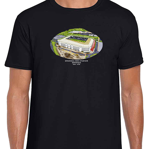 Swansea Around The Grounds Swansea.com Stadium Water Colour Black T-Shirt