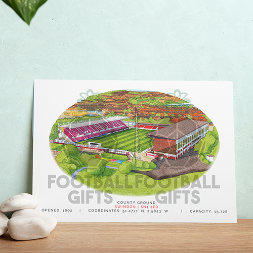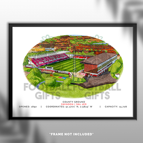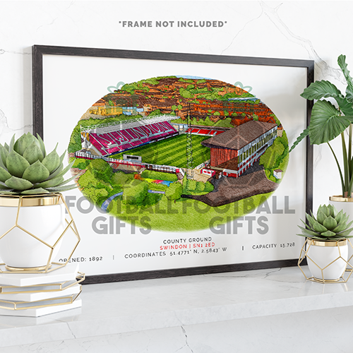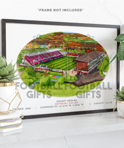 Swindon Town Around The Grounds County Ground Stadium Water Colour Print Framed Print