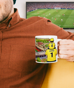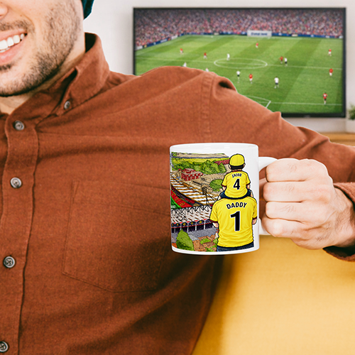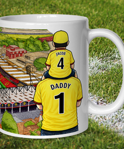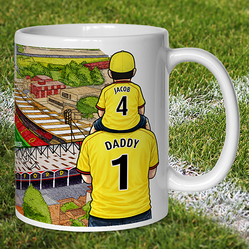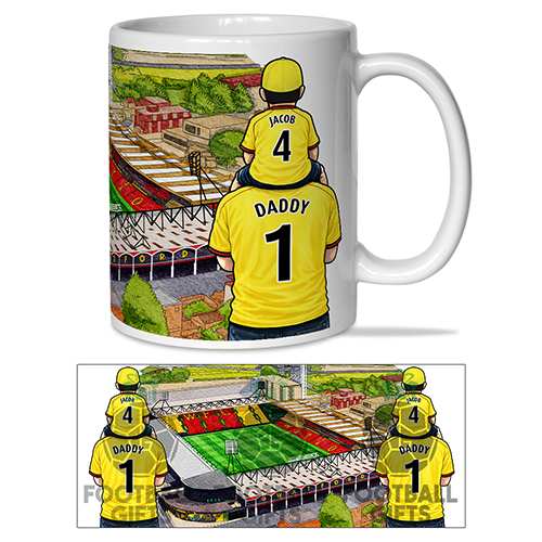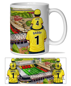 Each mug depicts a detailed print of a water colour painting of the stadium and an image of Father & Son that can be personalised with names & numbers of your choice.