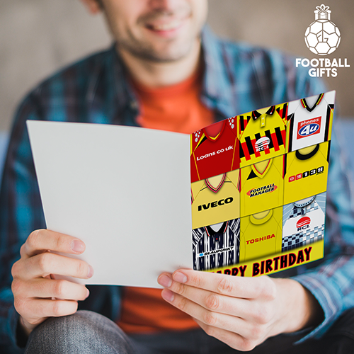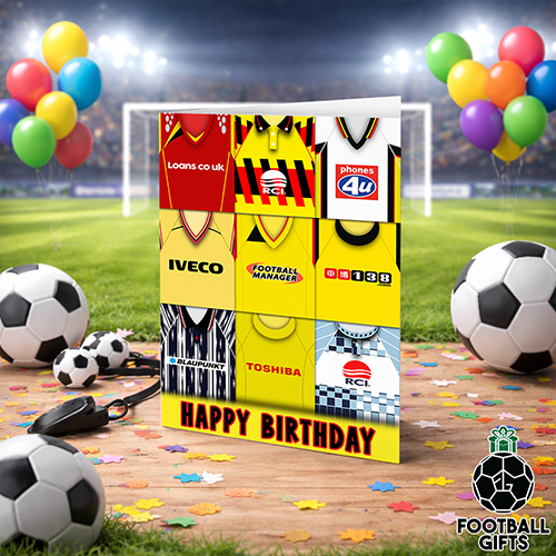 Watford Happy Birthday Greeting Card Retro Shirt Montage Classic Kits