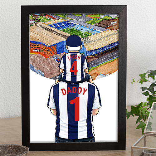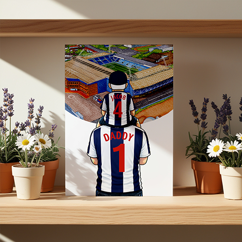 Each piece depicts a detailed print of a water colour painting of the stadium and an image of Father and Son that can be personalised with names and numbers of your choice.