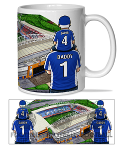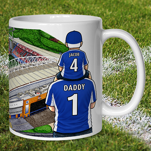 Each mug depicts a detailed print of a water colour painting of the stadium and an image of Father & Son that can be personalised with names & numbers of your choice.