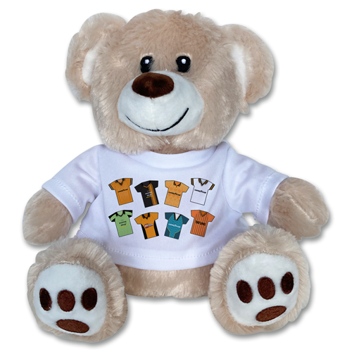 Featuring classic retro shirts from throughout the years printed on the bear’s t-shirt.