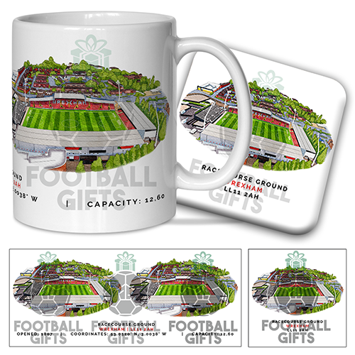 Wrexham Around The Grounds Racecourse Ground Water Colour Mug & Coaster Set